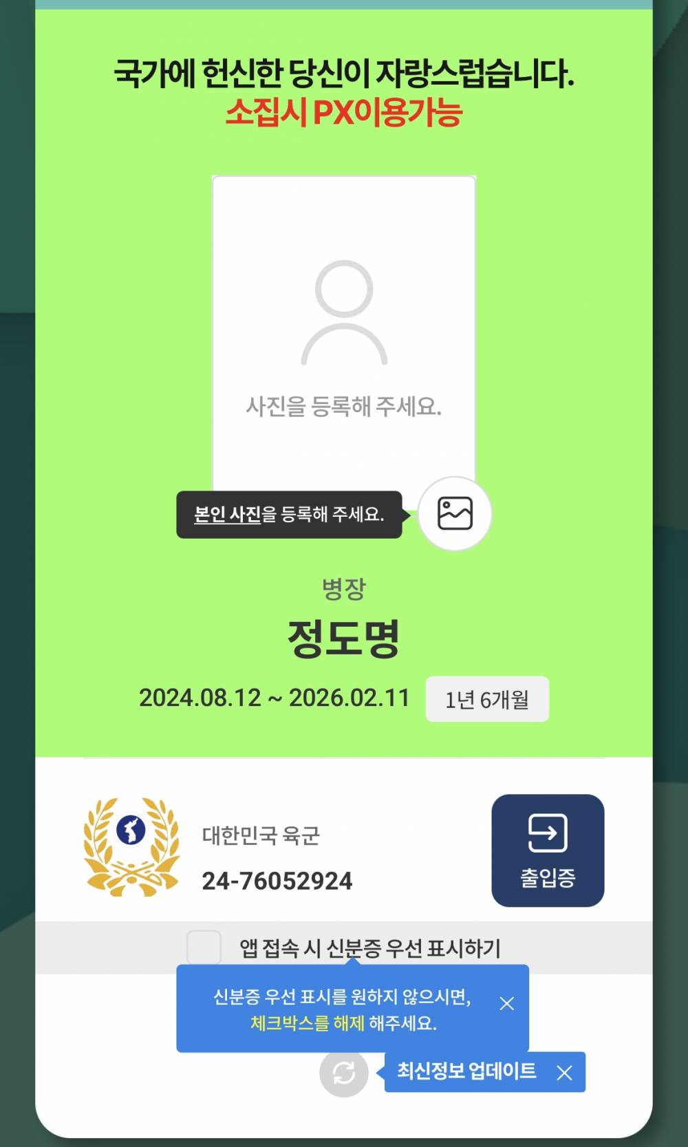 현역군인 인증합니다